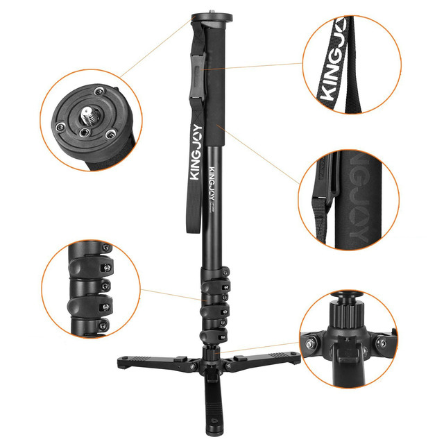 У основи монопода є рухома опора з трьома складаними прогумованими лапками. Опора кріпиться до монопода за допомогою рухомого кульового вузла та має можливість нахилу в будь-якому напрямку та повороту навколо своєї осі. Модель Kingjoy MP-3008F має чотирисекційну конструкцію, секцій фіксуються потужними та надійними кліпсовими затискачами.